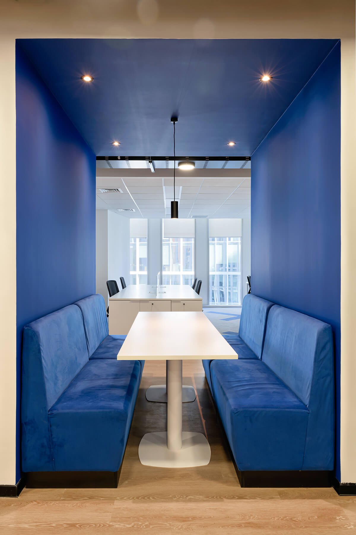 El diseño open plan fomenta la interacción entre equipos, creando un flujo de trabajo dinámico y moderno. Al mismo tiempo, las oficinas privadas y salas de conferencias están diseñadas para garantizar espacios tranquilos, ideales para reuniones y concentración.