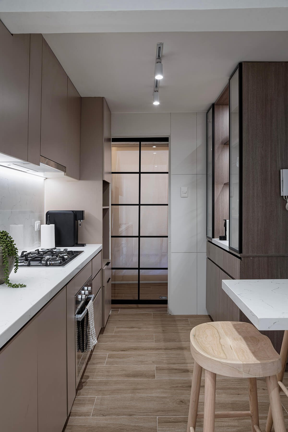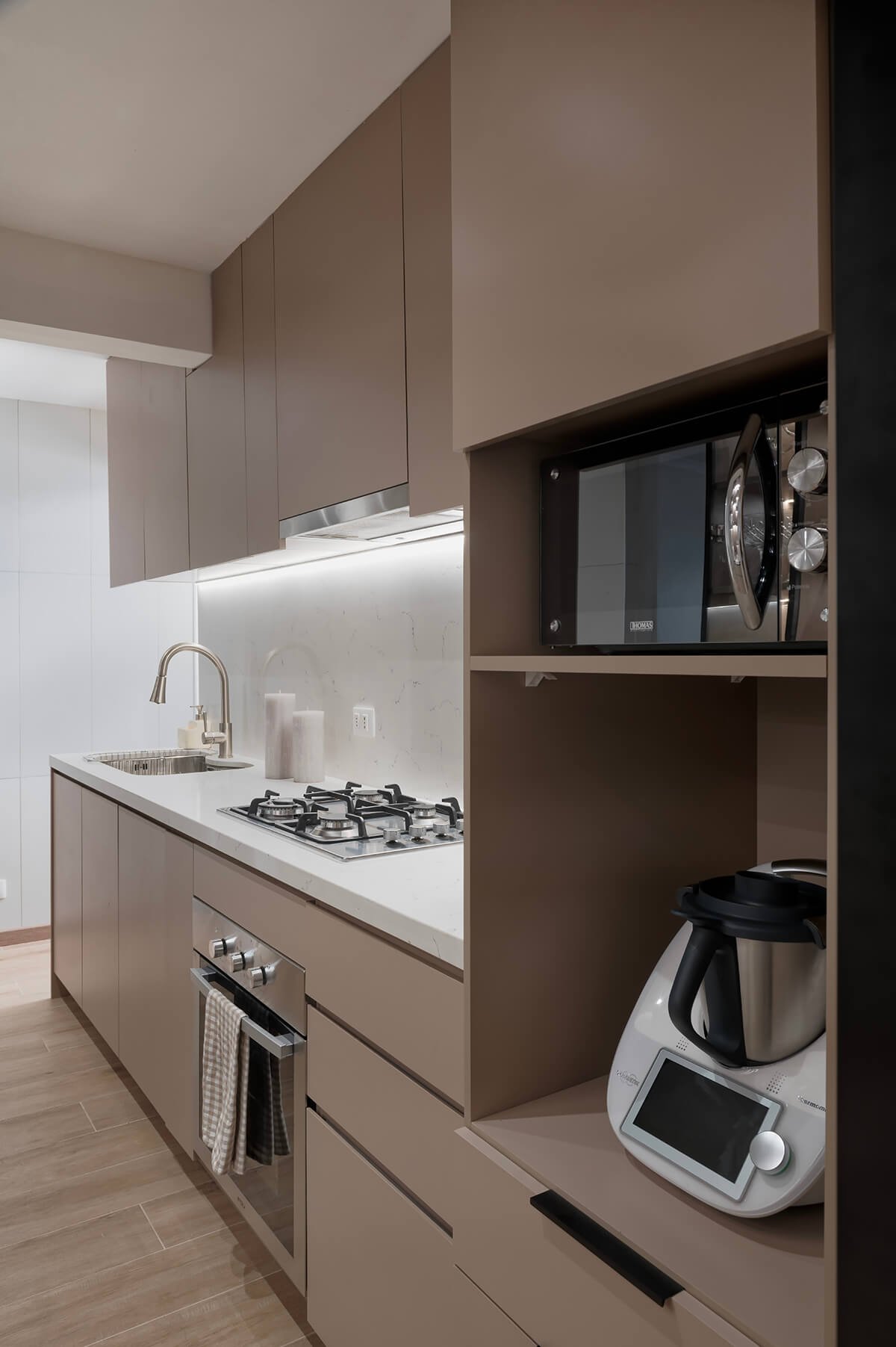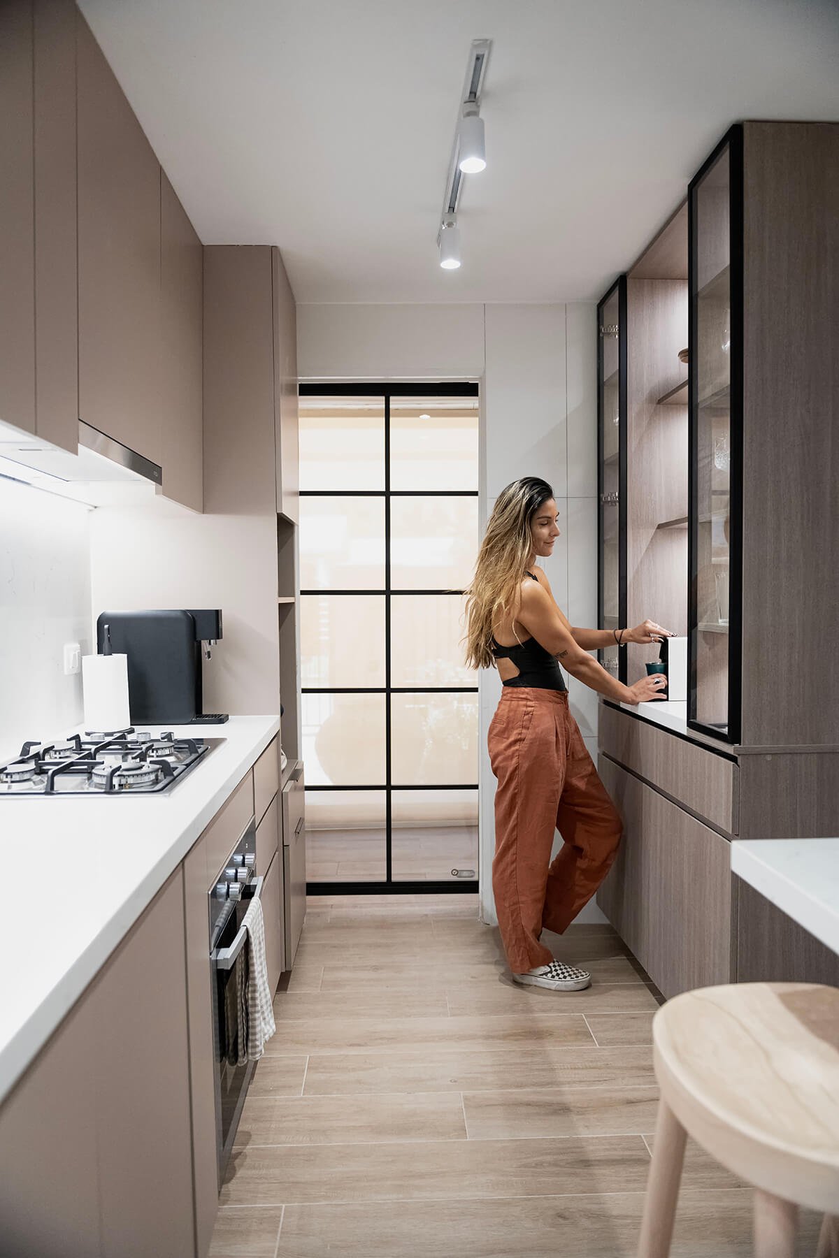 En esta cocina pequeña y alargada, el diseño se centró en redefinir los espacios para optimizar cada metro cuadrado, creando un ambiente más luminoso y aireado. Cada rincón fue pensado en función de las actividades diarias de la familia, logrando un equilibrio entre estética y funcionalidad.